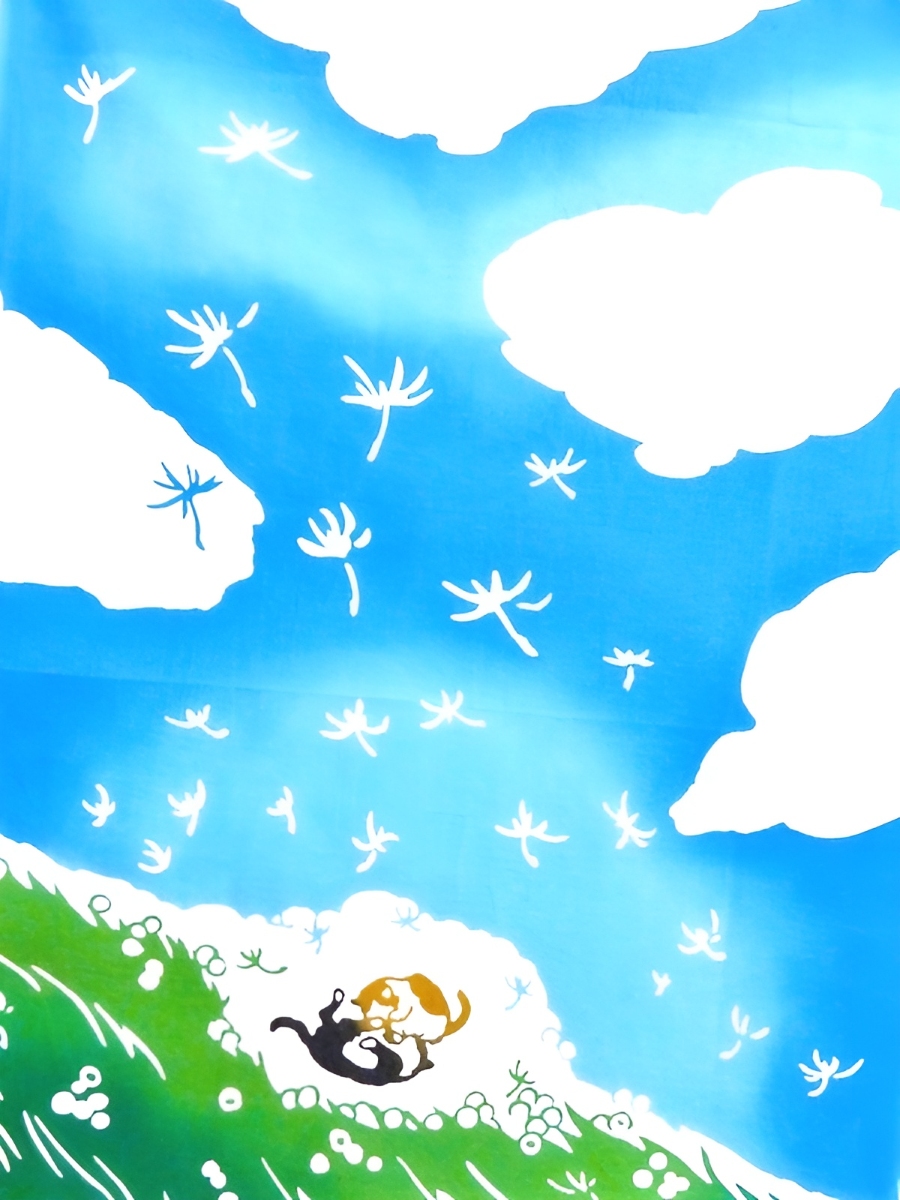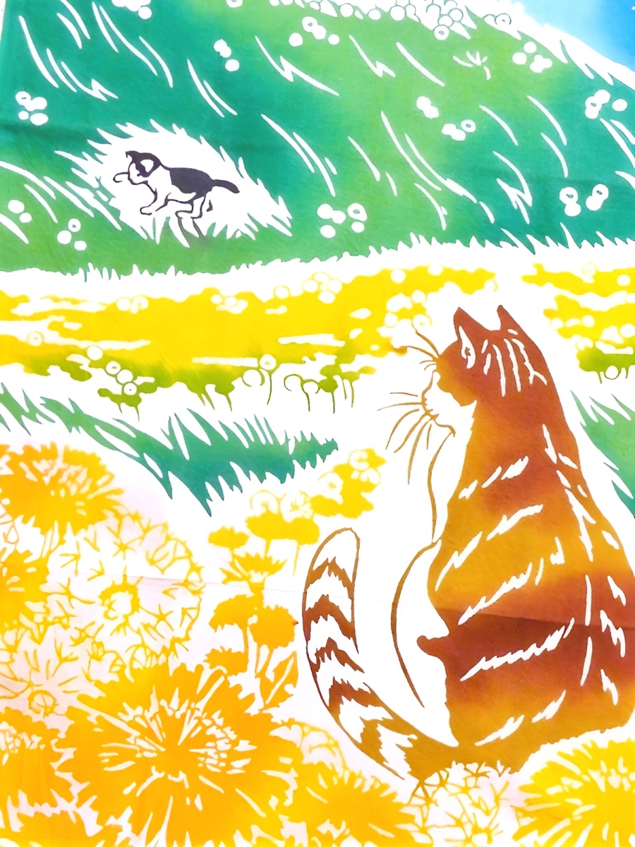 手ぬぐい たんぽぽに猫