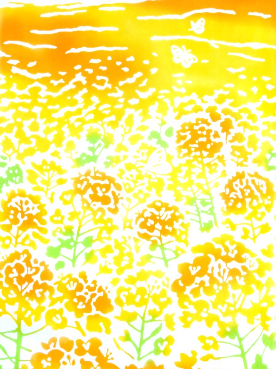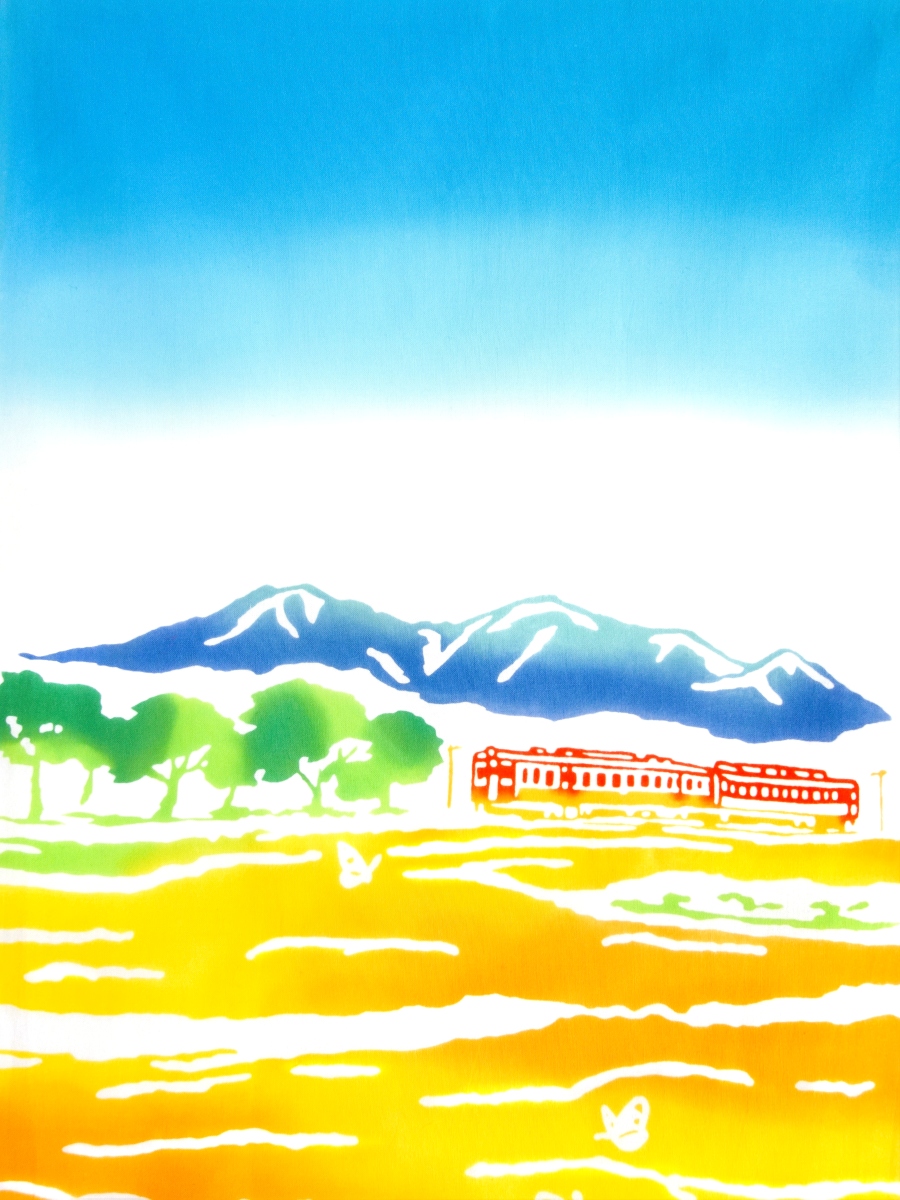 梨園染の手ぬぐい 菜の花列車