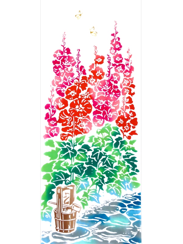 梨園染の手ぬぐい 立葵
