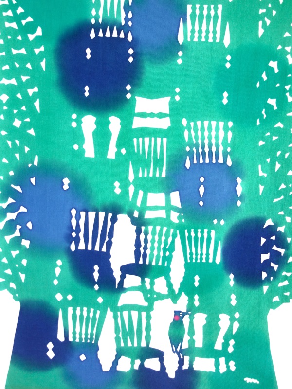 【家具屋のキツツキさんが木をコンコンつついて椅子を作る様子を描きました。】