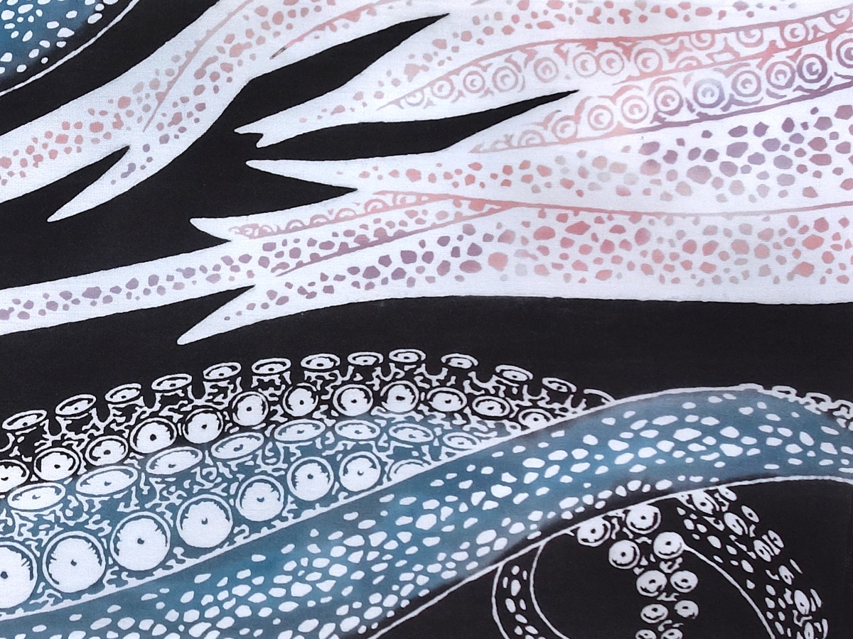 それぞれの腕の動きや吸盤の特徴など、デフォルメしつつもできる限りリアルに描きました。