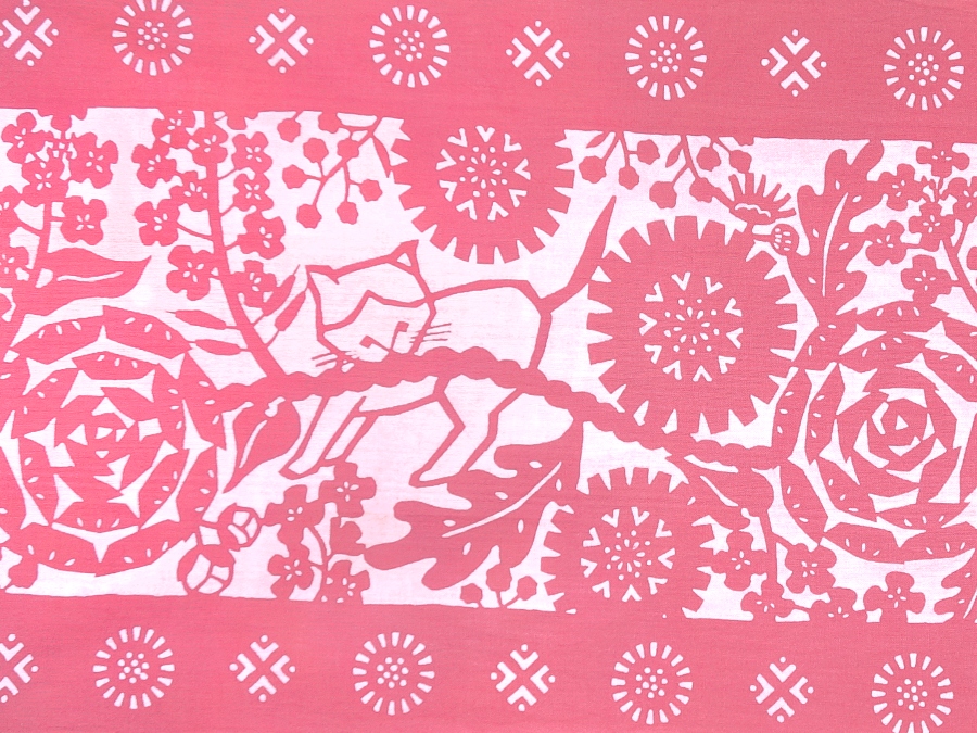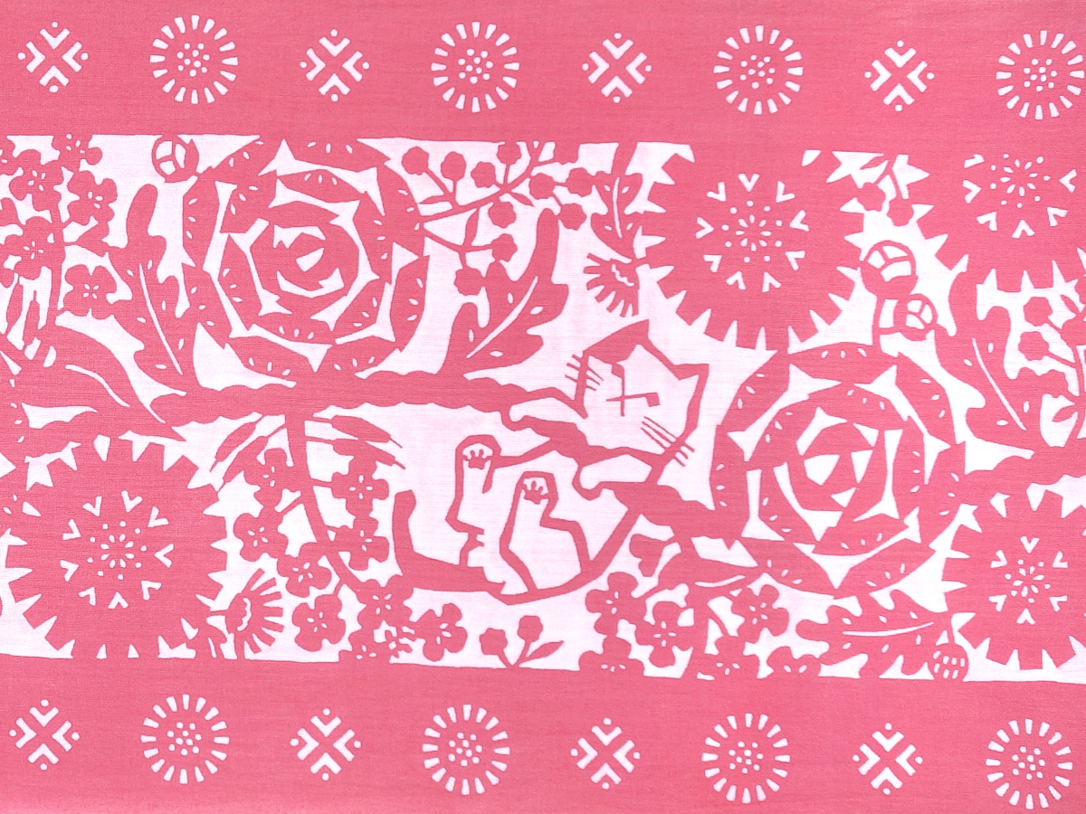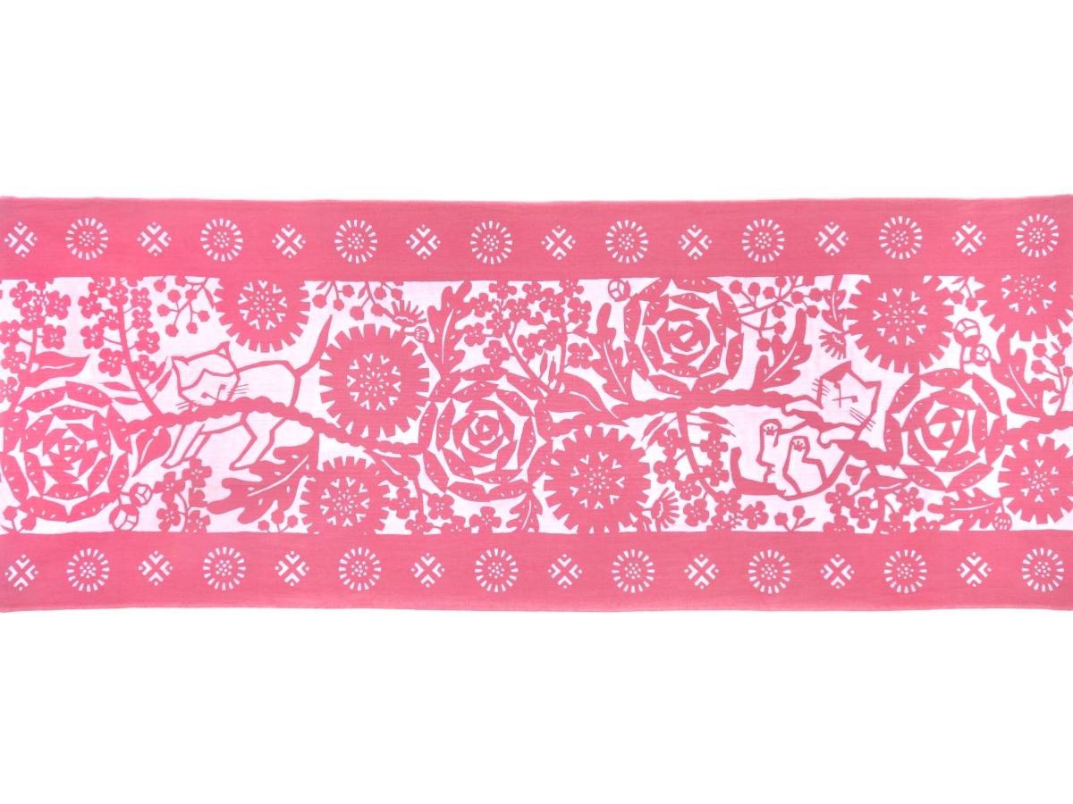 【期間限定、11月9日20時〜販売開始】amiuの型染め手ぬぐい 幸せを運ぶねこ ピンク [品番:4272]