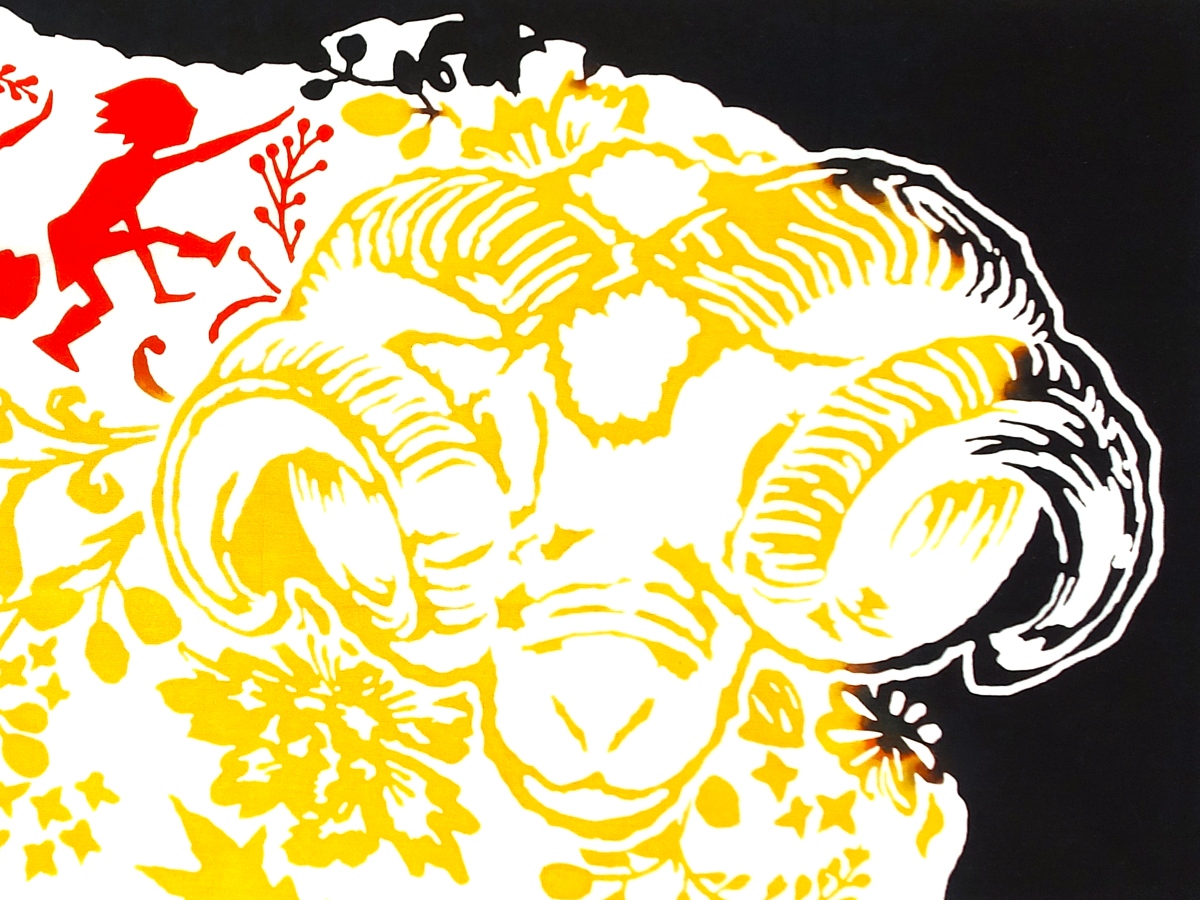 【期間限定】ルミロックの干支「未」手ぬぐい 空飛ぶ黄金の羊 [品番:4311]