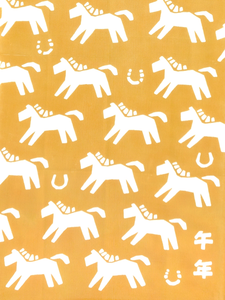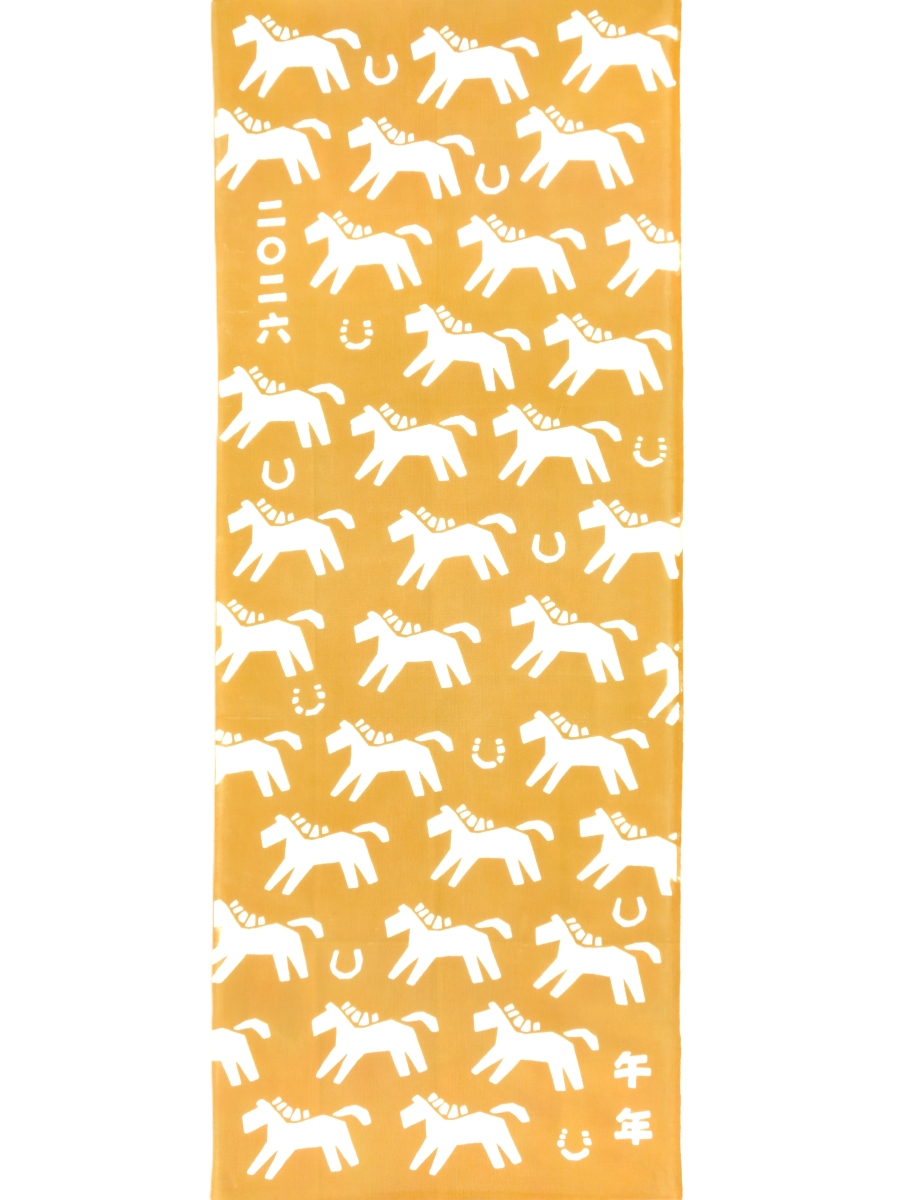 【数量限定、12月7日20時〜販売開始】越後亀紺屋の2026年干支「午」手ぬぐい 馬が合う 黄土色