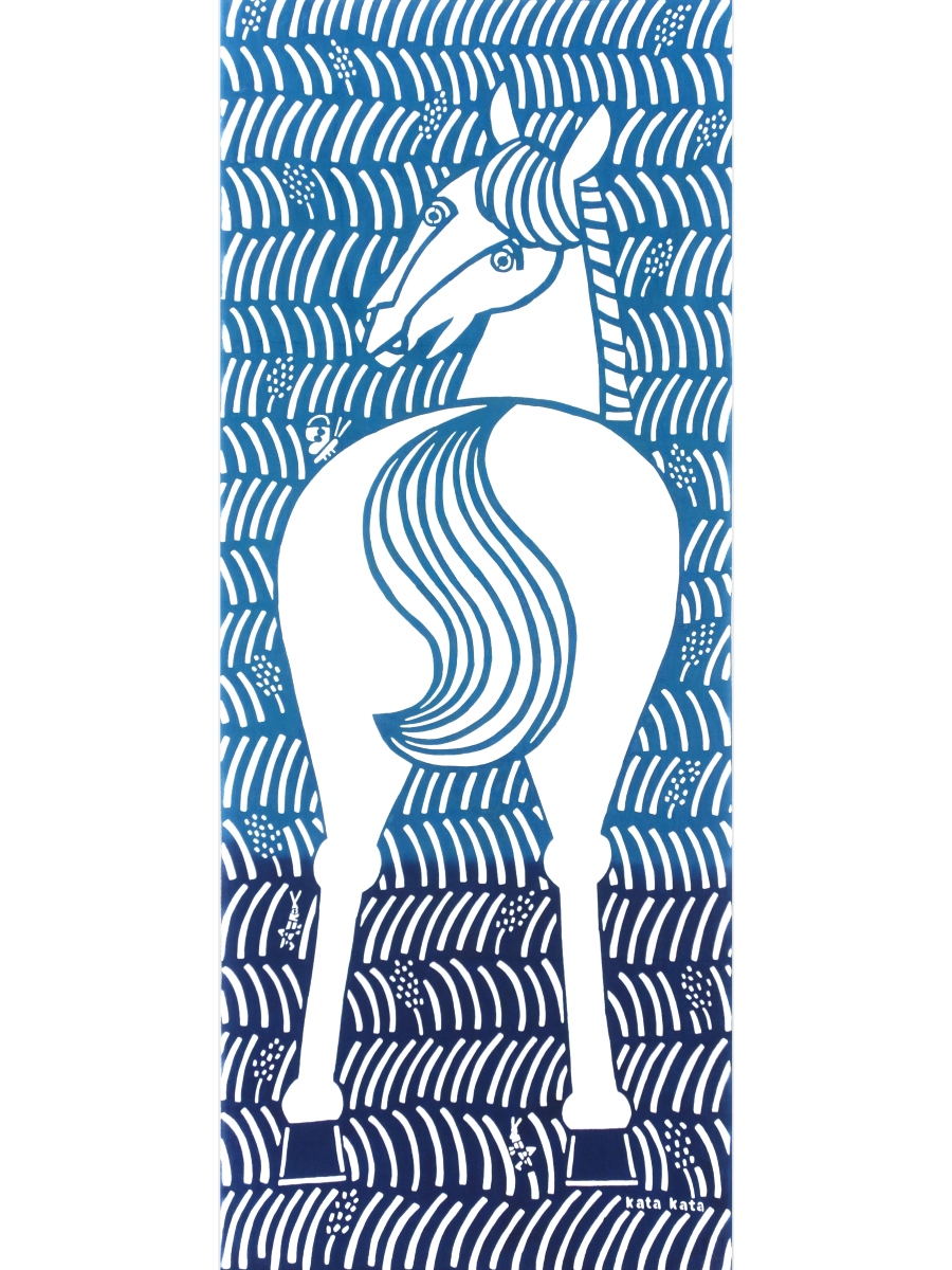 【12月7日20時〜販売開始】kata kataの2026年干支「午」手ぬぐい ふりむきうま 青