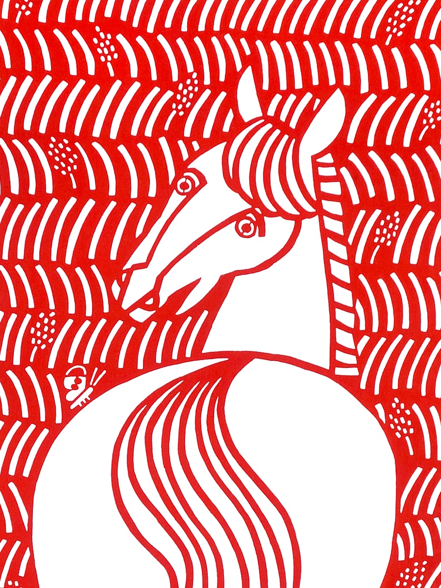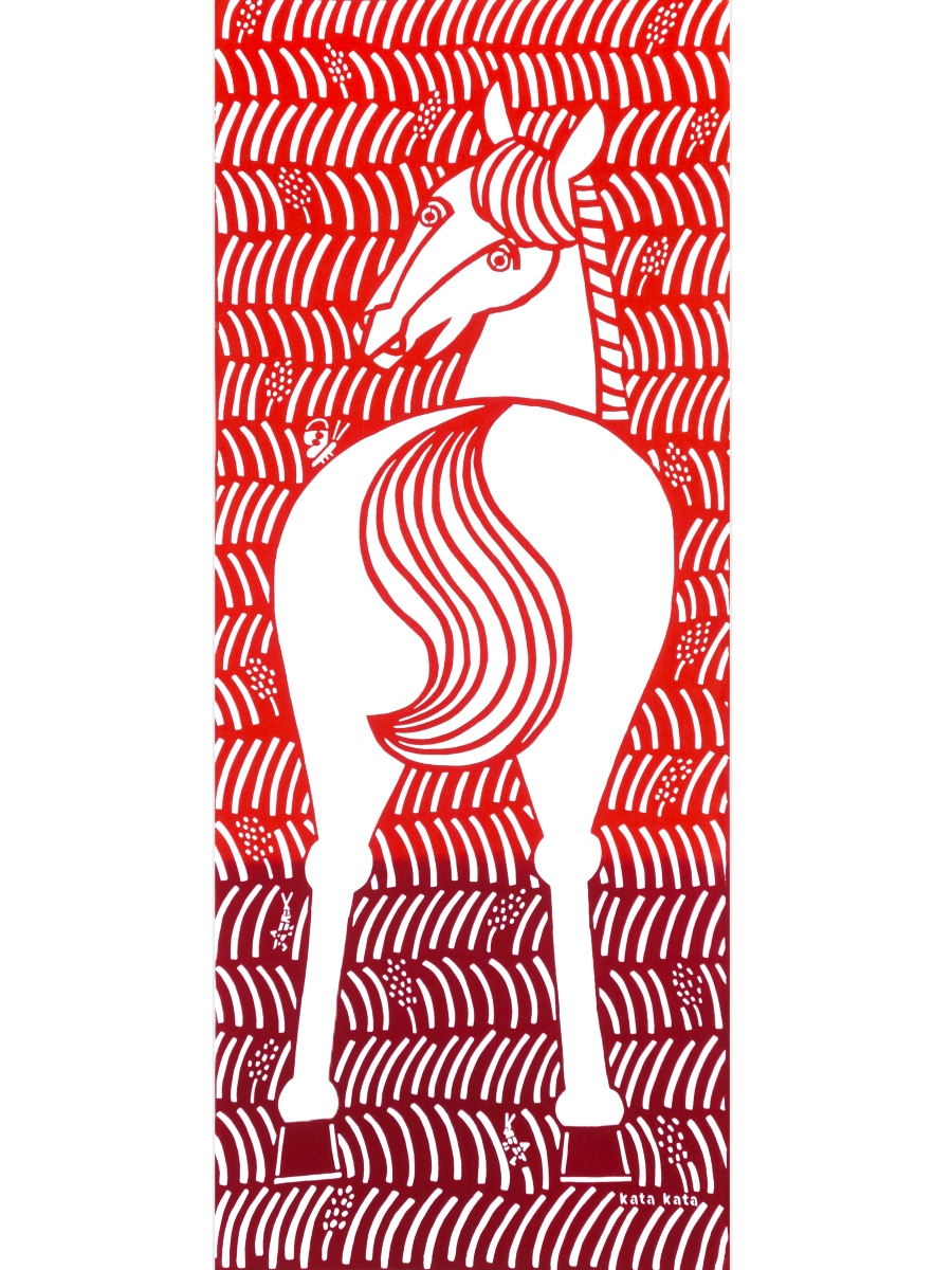 【限定色、12月7日20時〜販売開始】kata kataの2026年干支「午」手ぬぐい ふりむきうま 赤【お一人様2点まで】 [品番:4320]