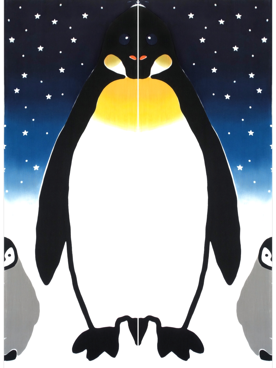 2枚合わせると雛が現れたり、大人ペンギンが現れます。