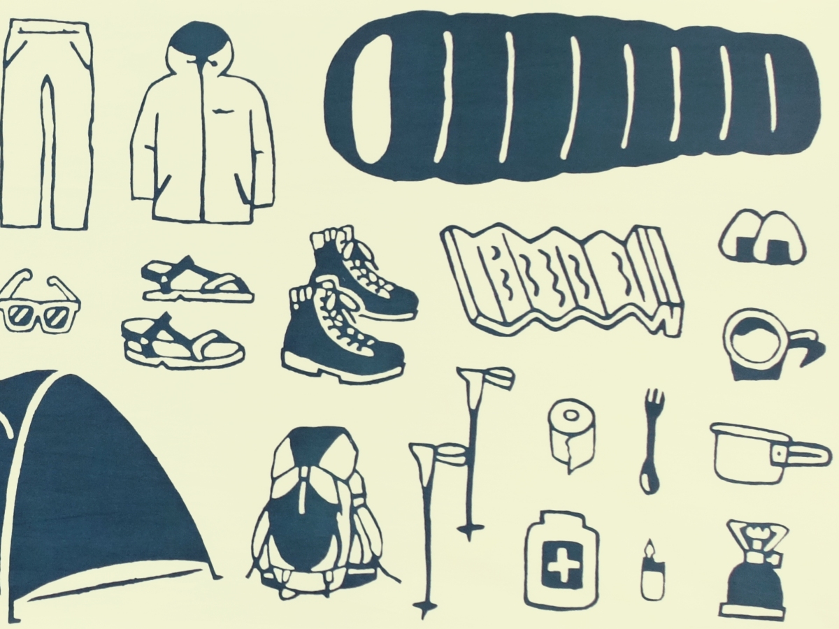 ライター・ロールペーパー・カトラリー・食料・登山靴・サンダル・サングラス