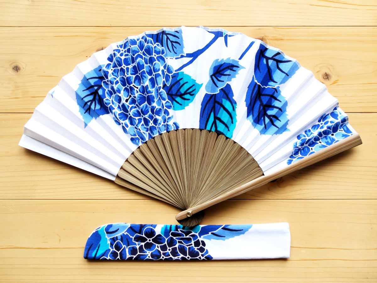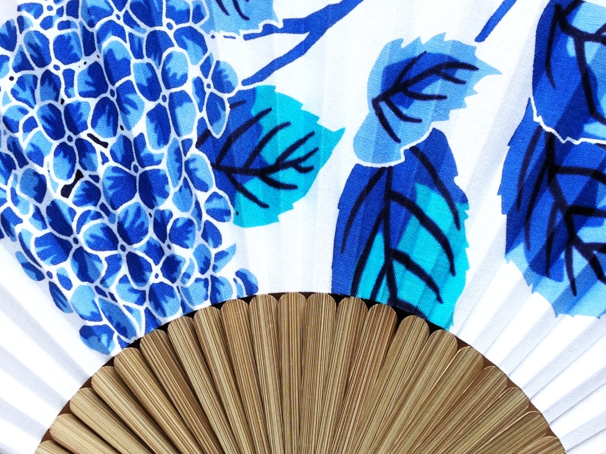 染の安坊の手ぬぐい扇子 染付色絵 紫陽花