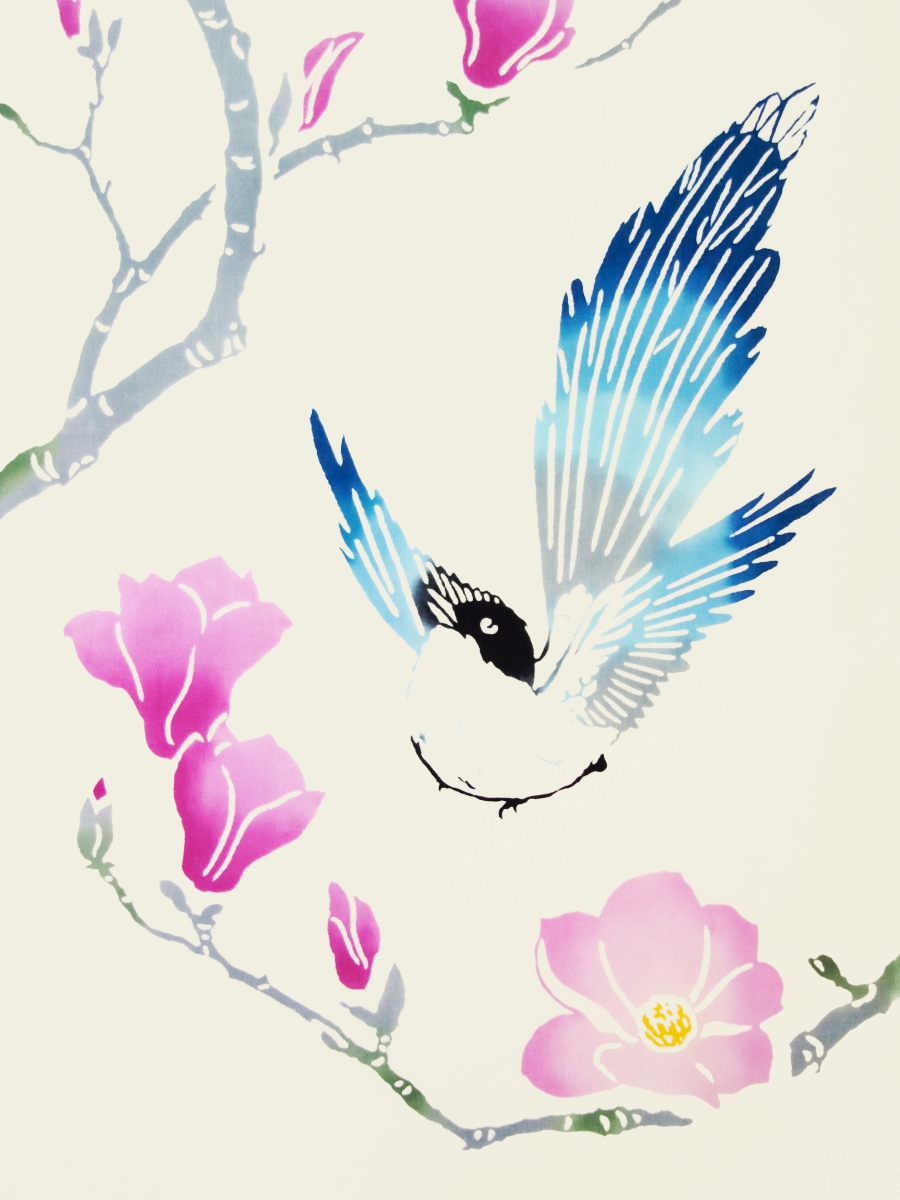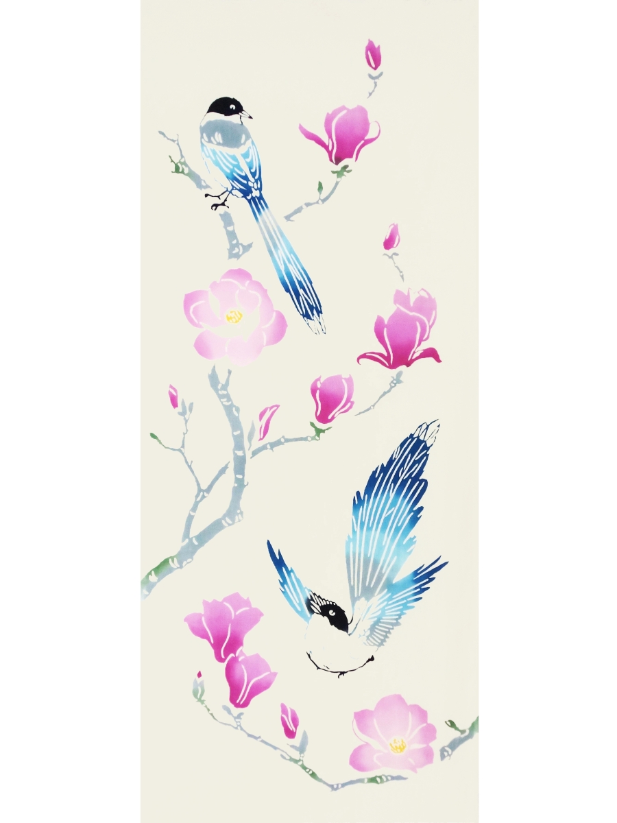 梨園染の手ぬぐい 木蓮に尾長 [品番:698]